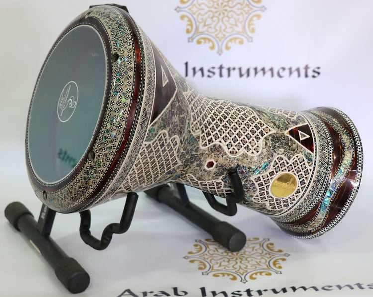 This darbuka is a unique and one of a kind. The darbuka covers with blue and white exclusive pearlד, belongs to Arab Instruments rare collection.