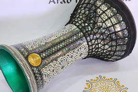 This darbuka can be great for solo or as a part of a band. The darbuka has been decorated hand made with blue pearls from Australia Coasts and it looks one of a kind . If you are looking for a premium ceramic darbuka, with high quality ceramic material, this model will be the answer.