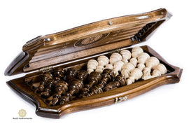 - 32 playing pieces & 32 chess figures made of beech and walnut wood