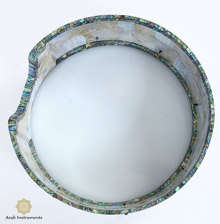 The Japanese Pearl Egyptian Bandir by Arab Instruments is a true fusion of artistry and sound, handcrafted in Egypt for a unique playing experience. What sets this bandir apart? It’s adorned with Japanese white pearl and blue pearls from New Zealand & Australia, giving it a one-of-a-kind aesthetic.