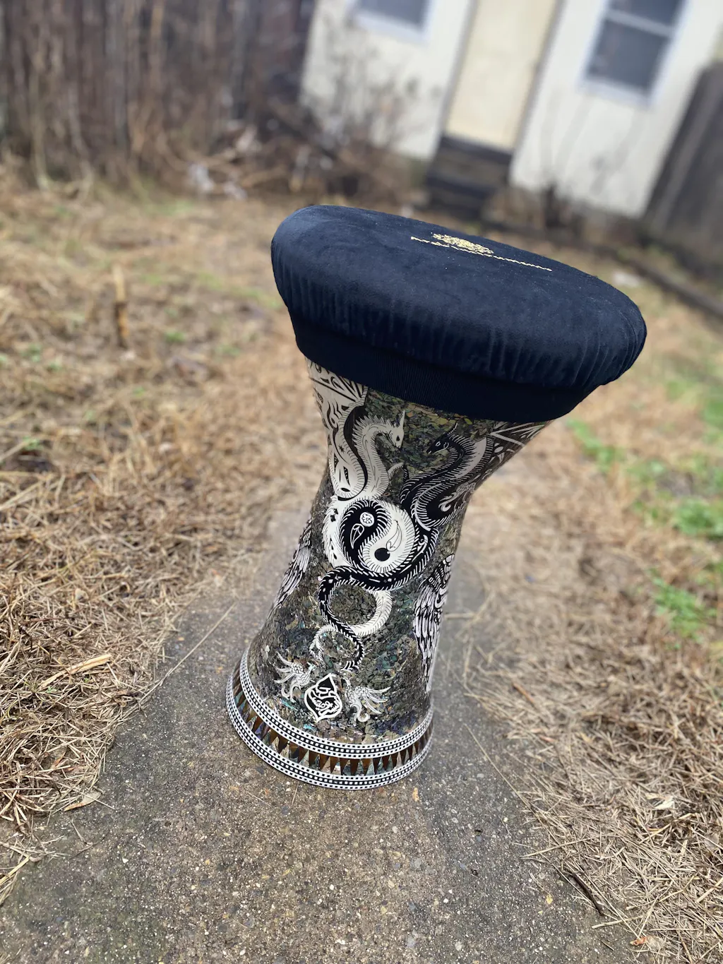 Sombaty Plus Darbuka Doumbek Black and White Dargon #7782