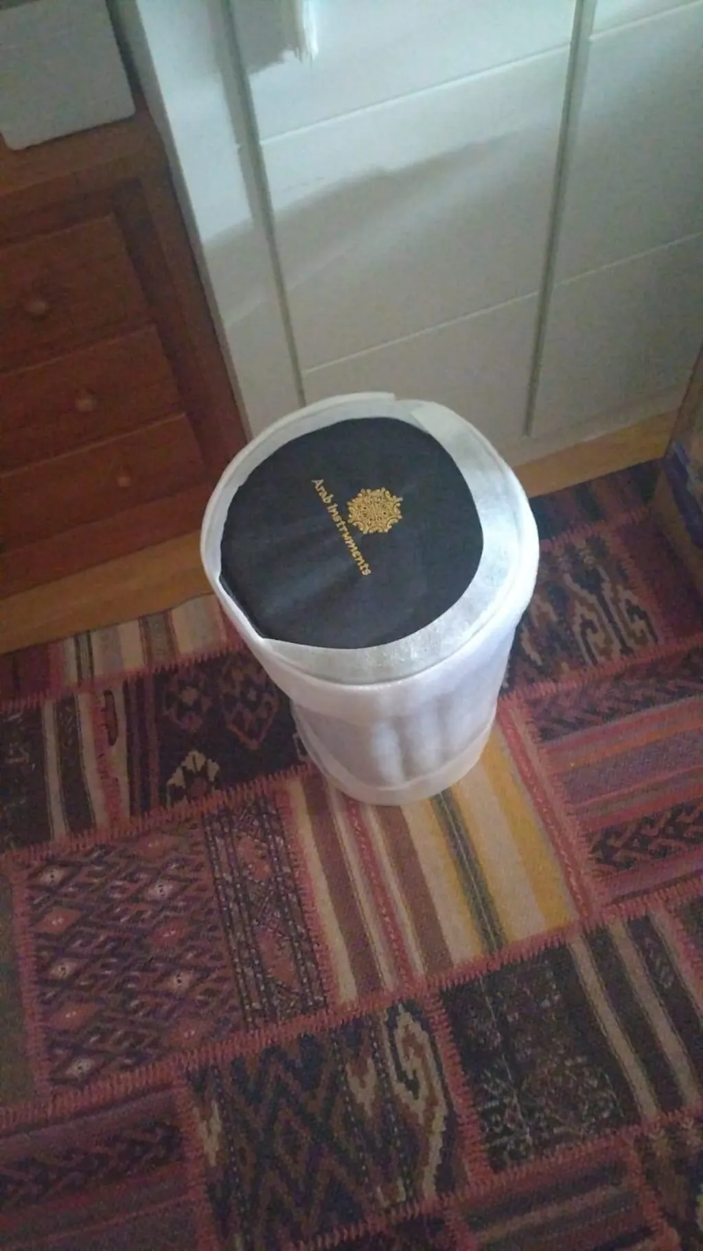 The Black and White Dargon Darbuka, crafted by Arab Instruments in Egypt, is a remarkable Sombaty Plus Darbuka. It is specifically designed to be heavier than the standard Sombaty Darbuka, featuring an additional layer of aluminum. This unique construction enables it to produce a stronger sound, particularly impressive for "Doom strokes." To ensure precise tuning, this model is equipped with 8 pegs, allowing for accurate adjustments.
